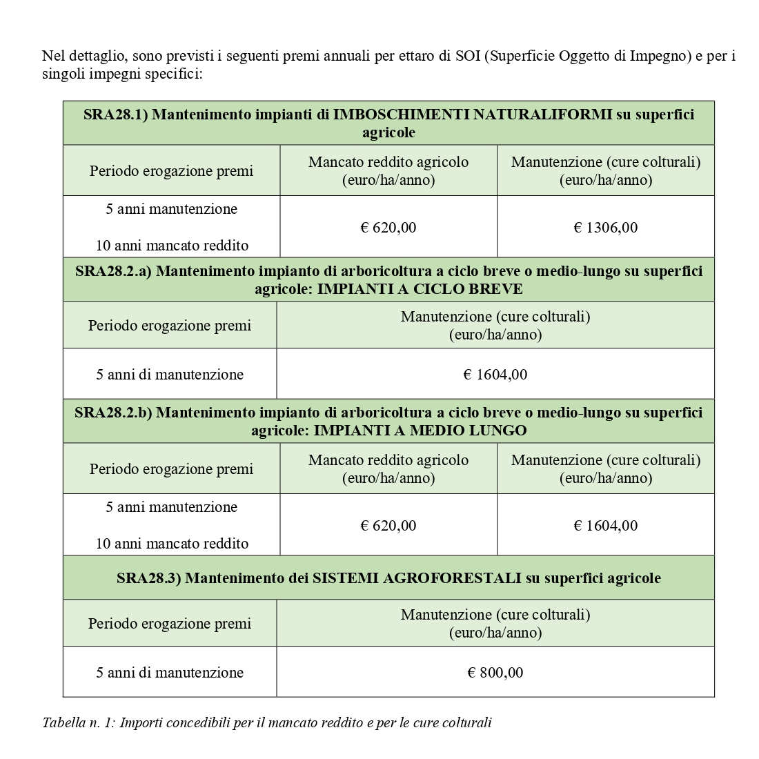 SRA28 “Sostegno per mantenimento della forestazione/imboschimento e sistemi agroforestali”